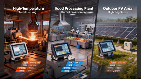 [Scenario-Specific Pitfall Avoidance Tips] ① Model Upgrade: Prioritize industrial-grade touch screens with a wide temperature range of -4°F to 158°F, equipped with metal heat dissipation housings and built-in cooling fans. Avoid plastic housing models; select high-temperature resistant Corning glass for the screen protective glass to prevent high-temperature deformation. ② Installation Protection: Keep at least 5 feet away from heat sources such as furnaces and heating ovens. If unavoidable, add high-temperature resistant heat shields, reserve more than 12 inches of heat dissipation space, and ensure no obstruction of heat dissipation air ducts; avoid fully sealing the cabinet during embedded installation, and open heat dissipation holes on the side of the cabinet with dust screens. ③ Wiring Protection: Use high-temperature resistant silicone cables, add high-temperature protective sleeves at interfaces to avoid short circuits caused by melting of wire insulation layers due to high temperatures; regularly inspect wiring terminals to prevent poor contact caused by high-temperature oxidation.