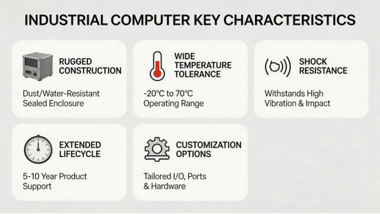 Key characteristics of industrial computers include: