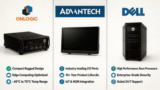 When selecting an industrial computing solution, choosing a reputable brand is critical to ensuring reliability, support, and long-term performance. Three leading players in the industrial computing space are OnLogic, Advantech, and Dell.