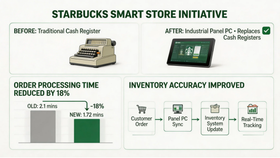 Starbucks has rolled out industrial panel PCs in over 8,000 U.S. locations as part of its “Smart Store” initiative. These all-in-one touchscreen systems replace traditional cash registers and drive-thru order boards, processing transactions, managing inventory, and analyzing customer preferences in real time. The fanless design ensures silent operation in busy cafes, while the rugged touchscreens resist spills and daily wear. By using industrial computing solutions, Starbucks reduced order processing time by 18% and improved inventory accuracy, creating a more seamless experience for both customers and baristas.
