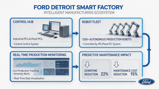 Ford Motor Company’s Detroit Assembly Plant is a flagship example of Industry 4.0 in action. The facility uses a network of industrial PCs and industrial panel PCs to power its advanced robotics and automation systems. These rugged computing solutions monitor production lines in real time, adjusting robotic arm movements and assembly processes to optimize efficiency. By integrating predictive maintenance algorithms running on industrial PCs, Ford reduced unplanned downtime by 22% and cut production costs by 15% in its first year of implementation. The plant’s HMI systems, powered by industrial panel PCs, allow operators to monitor 1,200+ robots and make instant adjustments, ensuring consistent quality across every vehicle.
