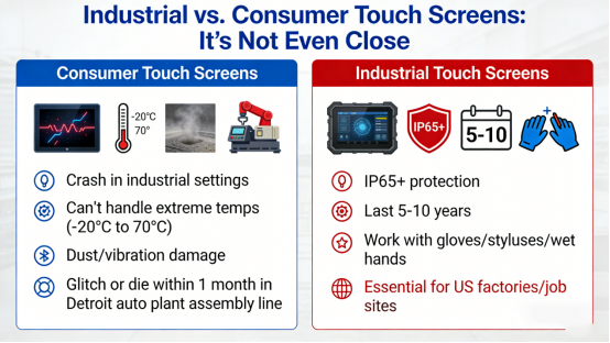 1. Industrial vs. Consumer Touch Screens: It’s Not Even Close