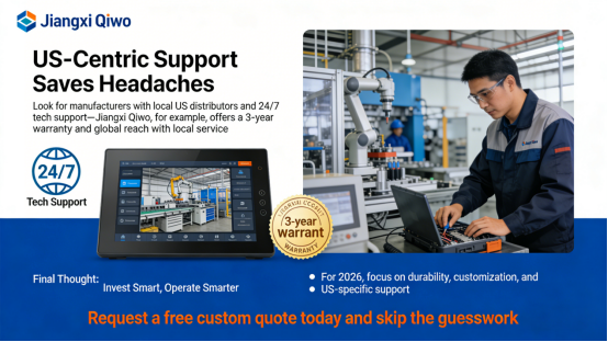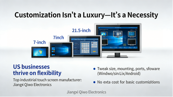 US businesses thrive on flexibility, and top industrial touch screen manufacturers like Jiangxi Qiwo Electronics get that. From tiny 7-inch displays to 21.5-inch large touch screen monitors, you can tweak the size, mounting, ports, and software (Windows/Linux/Android) to fit exactly what you need. Whether you need a screen that fits in a tight control panel or one that works with your existing Linux system, Jiangxi Qiwo can tweak it to match—no extra cost for basic customizations.