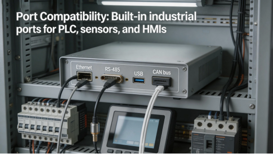 • Port Compatibility: Built-in industrial ports (Ethernet, RS-485, USB, CAN bus) to connect to your PLC, sensors, and HMIs.