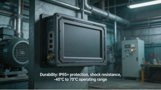 • Durability: IP65+ protection (for dusty/wet environments), shock resistance (1.5m drop test), and temperature range of -40°C to 70°C.