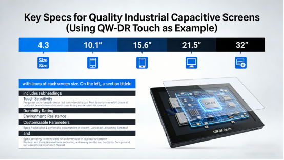 A quality industrial touch screen should adapt to your project, not the other way around. The QW-DR Series, for example, comes in 5 sizes (4.3”, 10.1”, 15.6”, 21.5”, 32”) to fit different devices, and its manual notes that all parameters are customizable — including interface (I2C/USB), touch sensitivity, and surface coating. When shopping, look for screens that offer this level of versatility, so you don’t have to compromise on performance or fit.