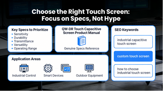 Choosing the right touch screen comes down to prioritizing the right specs — sensitivity, durability, transmittance, versatility, and operating range — not brand or price. The QW-DR Touch Capacitive Screen’s official product manual provides a useful reference for what to look for in a quality industrial touch screen, with genuine specs that illustrate these key features. By focusing on these factors, you can avoid common mistakes, reduce downtime, and save money in the long run.