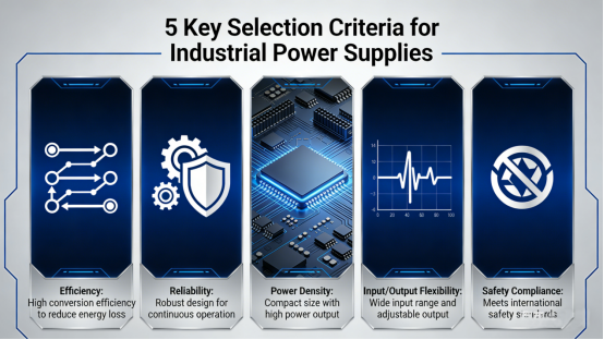 To choose an industrial power supply that meets your equipment’s needs and avoids costly failures, focus on these five core criteria—all verified by official product manuals and industrial technical standards: