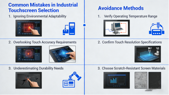 Even with clear guidance, many professionals make avoidable mistakes when selecting industrial touch screens—errors that lead to equipment malfunctions, operational delays, and unnecessary costs. These missteps often stem from overlooking practical needs or prioritizing the wrong features, rather than product quality.