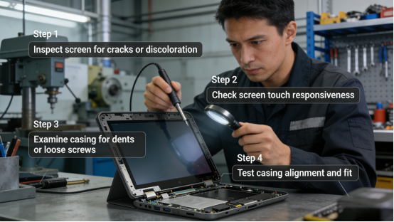 Step 2: Inspect the screen and housing. Check the QW-T Series’ screen for cracks, dead pixels, or scratches, and inspect the housing for damage (e.g., dents, loose screws). If the screen is cracked, replace it with an original reinforced screen (per the product manual)—this takes 5-10 minutes and can be completed by on-site maintenance teams. Tighten any loose housing screws to ensure the vibration-resistant structure works effectively. Mistake to avoid: Using non-original screens—generic screens lack vibration resistance and will crack easily. For proper screen replacement, follow the QW-T Series reinforced screen replacement guidelines outlined in the product manual.