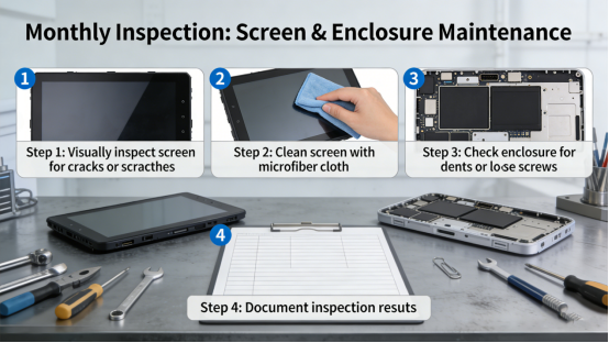 2. Inspect screen and housing monthly. Check for screen cracks, dead pixels, or housing damage—replace damaged parts with original components (per the product manual). For workshops with frequent impact, clean the screen weekly with a soft, dry cloth to remove dust and debris, which can exacerbate vibration-induced damage.