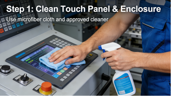 1. Clean the touch panel and housing weekly. Wipe the touch panel and housing with a soft, dry cloth to remove dust buildup—this prevents dust from accumulating and seeping into the display (per the product manual). For workshops with extreme dust, clean daily to maintain performance. Use a soft-bristled brush to remove dust from the display’s edges and connectors. This is a key part of QW-S Series dustproof maintenance, helping prevent dust intrusion. Avoid cleaning the display’s edges with sharp tools—this can damage the sealed gaskets and reduce dustproof performance (per the product manual).